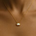Soft light, grounded elegance. A dreamy, rounded pearl set in a rippling gold border, Cloudline is delicate yet bold—made to float at your collarbone with poetic ease.